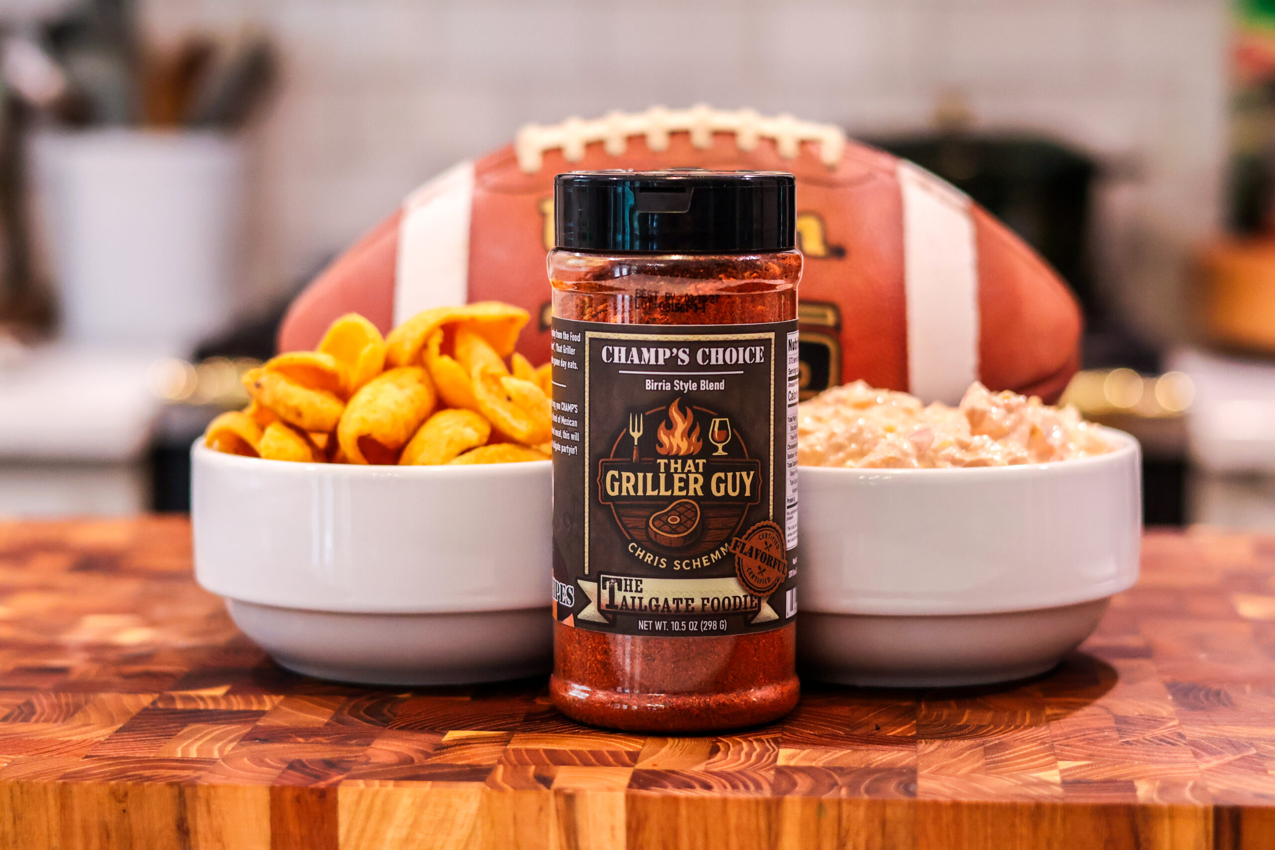 I’ve partnered with The Tailgate Foodie to bring you my first signature seasoning! Inspired by my winning birria-style patty melt on Food Networks’s “NFL Tailgate Takedown,” Champ’s Choice Seasoning Blend is all about bringing bold, slow-simmered flavor to your favorite dishes, without the extra work. This blend delivers the rich, smoky, and savory essence of classic birria in a way that’s easy to use for tacos, ramen, chili, dips, sauces, and even those next-level patty melts. Whether you’re slow-cooking short ribs, spicing up a tailgate dip, or layering flavor into a grilled cheese, Champ’s Choice Seasoning Blend has you covered.